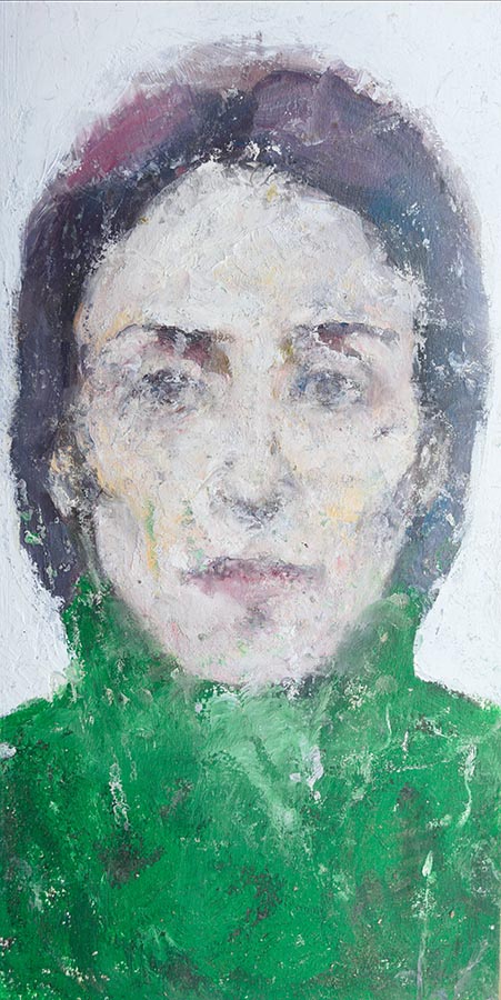 La réalité agit constamment jour et nuit comme une force sur notre système nerveux, musculaire, sanguin, lymphatique. Il faut trouver alors rapidement une méthode pour canaliser et transformer cette force en quelque chose de supportable. Sans méthode, la réalité nous submerge et invalide notre raison d’être au monde. Les séries présentées ici, et spécifiquement celle intitulée Entre chien et loup, a commencé à la fin de l’année 2010 à l’issue d’une expérience traumatique au cours de laquelle je ne pouvais distinguer ce qui relevait de l’état de rêve ou d’éveil. Ce flottement a duré longtemps. Clément Rosset dans "Récit d’un noyé" évoque cet état. Les drogues ingurgitées pendant cet épisode traumatique ont sans doute nourri ces visions qui se sont imprimées définitivement. Peindre permet de redonner unité à cette double réalité étrange et inconfortable qui vous a transformée, un temps indéfini, en spectre de vous-même. Entre chien et loup désigne métaphoriquement ce moment où la lumière décline et où notre cerveau met tout en œuvre pour anticiper ce noir qui s’annonce. Les détails se dissolvent et obligent à capturer l’essentiel. Quand le jour tombe le réel menace de disparaître, alors le désir impérieux de le maintenir et de l’incarner devient irrépressible. Il s’agit de ne plus vouloir s’absenter du monde. La série se poursuit donc depuis cette date. Les outils utilisés pour répondre à cette urgence sont volontairement rudimentaires : bâton d’huile, exclusion du pinceau. Il faut aller vite.