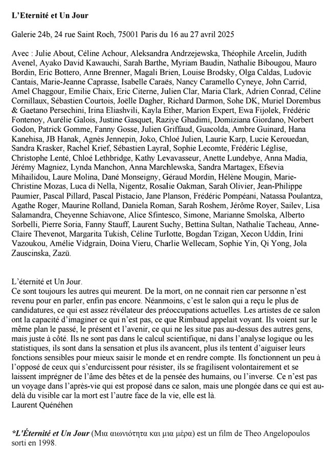 Exposition "L'Éternité et un jour" à la Galerie 24b, Paris.