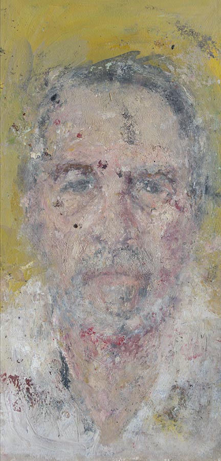 La réalité agit constamment jour et nuit comme une force sur notre système nerveux, musculaire, sanguin, lymphatique. Il faut trouver alors rapidement une méthode pour canaliser et transformer cette force en quelque chose de supportable. Sans méthode, la réalité nous submerge et invalide notre raison d’être au monde. Les séries présentées ici, et spécifiquement celle intitulée Entre chien et loup, a commencé à la fin de l’année 2010 à l’issue d’une expérience traumatique au cours de laquelle je ne pouvais distinguer ce qui relevait de l’état de rêve ou d’éveil. Ce flottement a duré longtemps. Clément Rosset dans "Récit d’un noyé" évoque cet état. Les drogues ingurgitées pendant cet épisode traumatique ont sans doute nourri ces visions qui se sont imprimées définitivement. Peindre permet de redonner unité à cette double réalité étrange et inconfortable qui vous a transformée, un temps indéfini, en spectre de vous-même. Entre chien et loup désigne métaphoriquement ce moment où la lumière décline et où notre cerveau met tout en œuvre pour anticiper ce noir qui s’annonce. Les détails se dissolvent et obligent à capturer l’essentiel. Quand le jour tombe le réel menace de disparaître, alors le désir impérieux de le maintenir et de l’incarner devient irrépressible. Il s’agit de ne plus vouloir s’absenter du monde. La série se poursuit donc depuis cette date. Les outils utilisés pour répondre à cette urgence sont volontairement rudimentaires : bâton d’huile, exclusion du pinceau. Il faut aller vite.